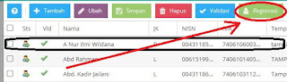 3. Kemudian akan tampil nama-nama peserta didik, kemudian pilih salah satu nama peserta didik yang anda mutasikan dan lanjutkan dengan mengklik menu "Registrasi"